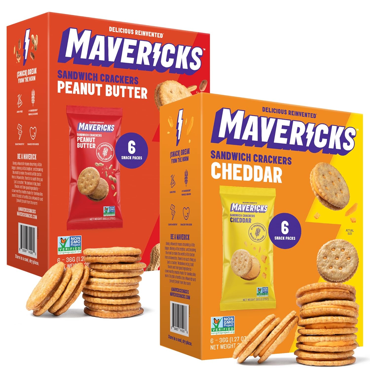 Mavericks Bolt Cookies are peanut-free and allergen-tested to support families with sensitivities. While Mavericks Cheddar Sandwich Crackers do not contain peanuts, they are manufactured on the same equipment as our Peanut Butter Sandwich Crackers. If you have specific allergy concerns, we always recommend reviewing the ingredient list on the package or reaching out to our team for more information.